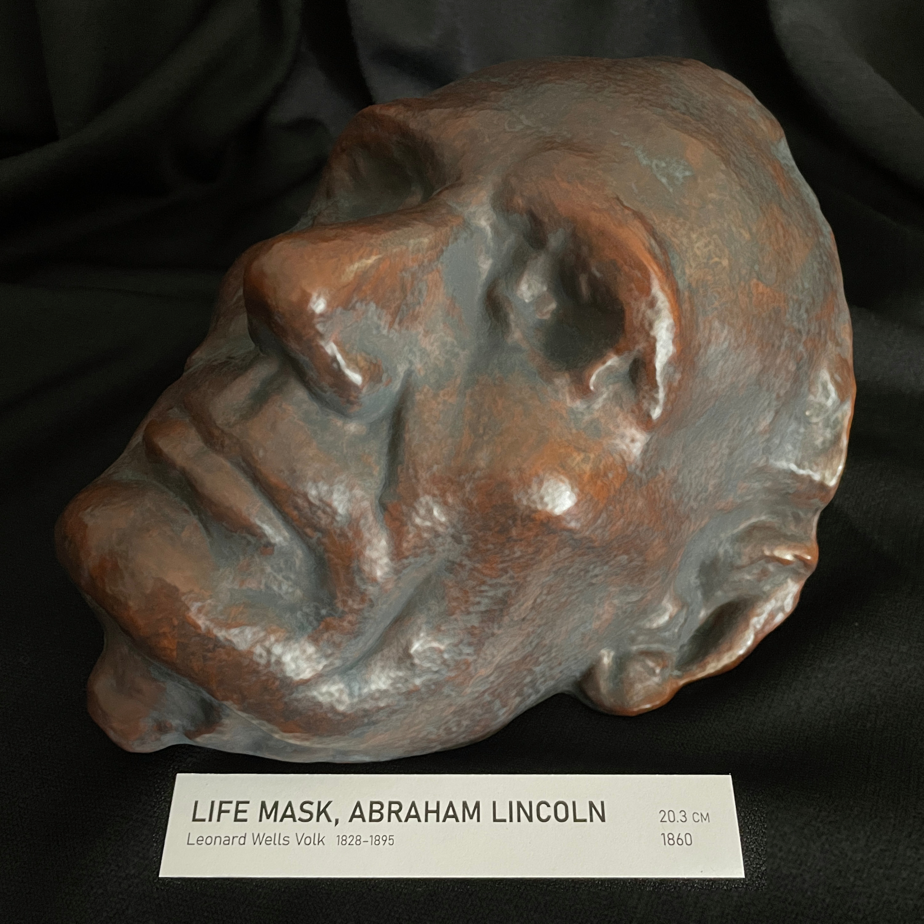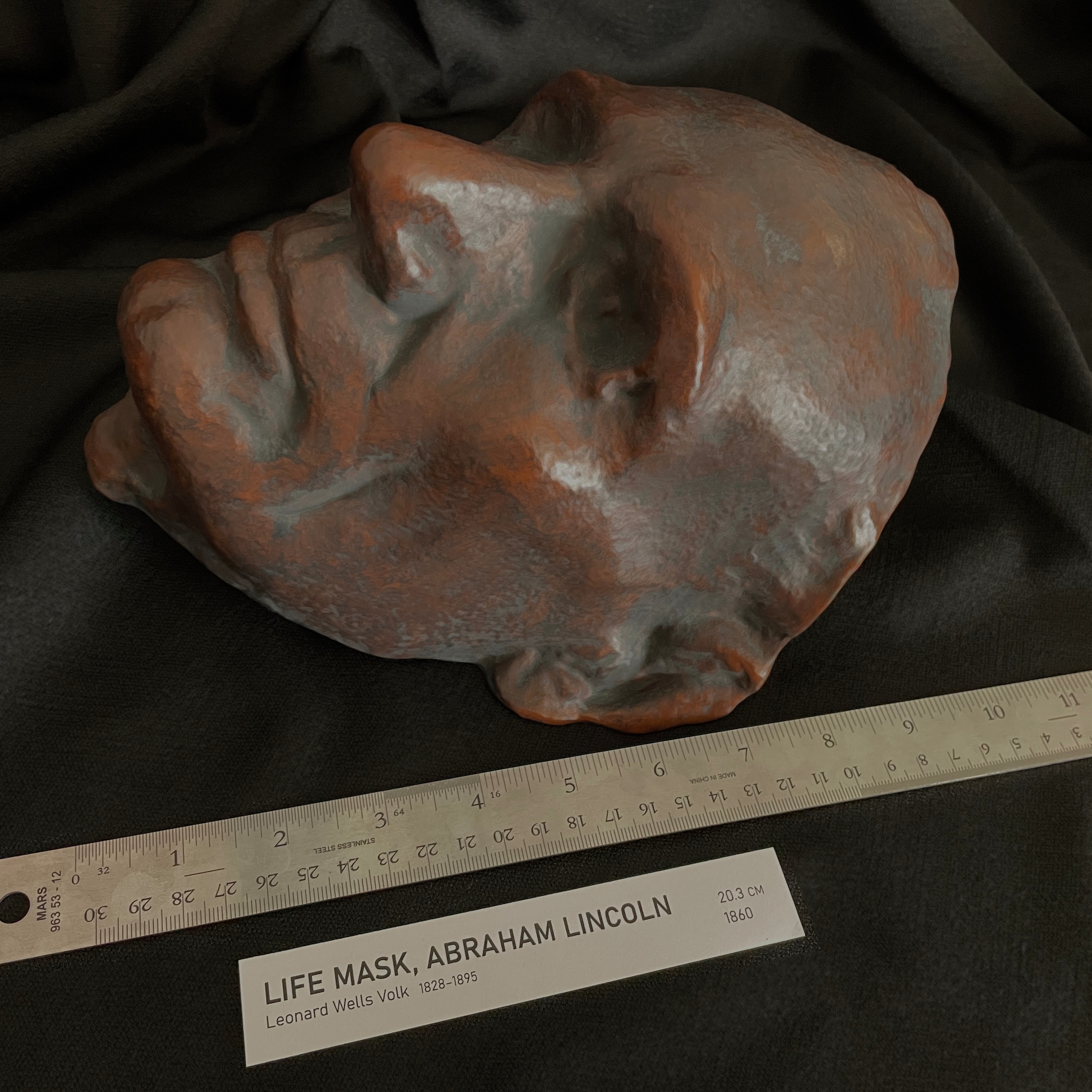 The original Volk mask is associated with Smithsonian collections and is widely treated as one of the most faithful representations of Abraham Lincoln in existence. The core value is documentary: the contours of the forehead, cheeks, mouth, and chin are fixed in plaster from the man himself, rather than filtered through later portrait conventions.