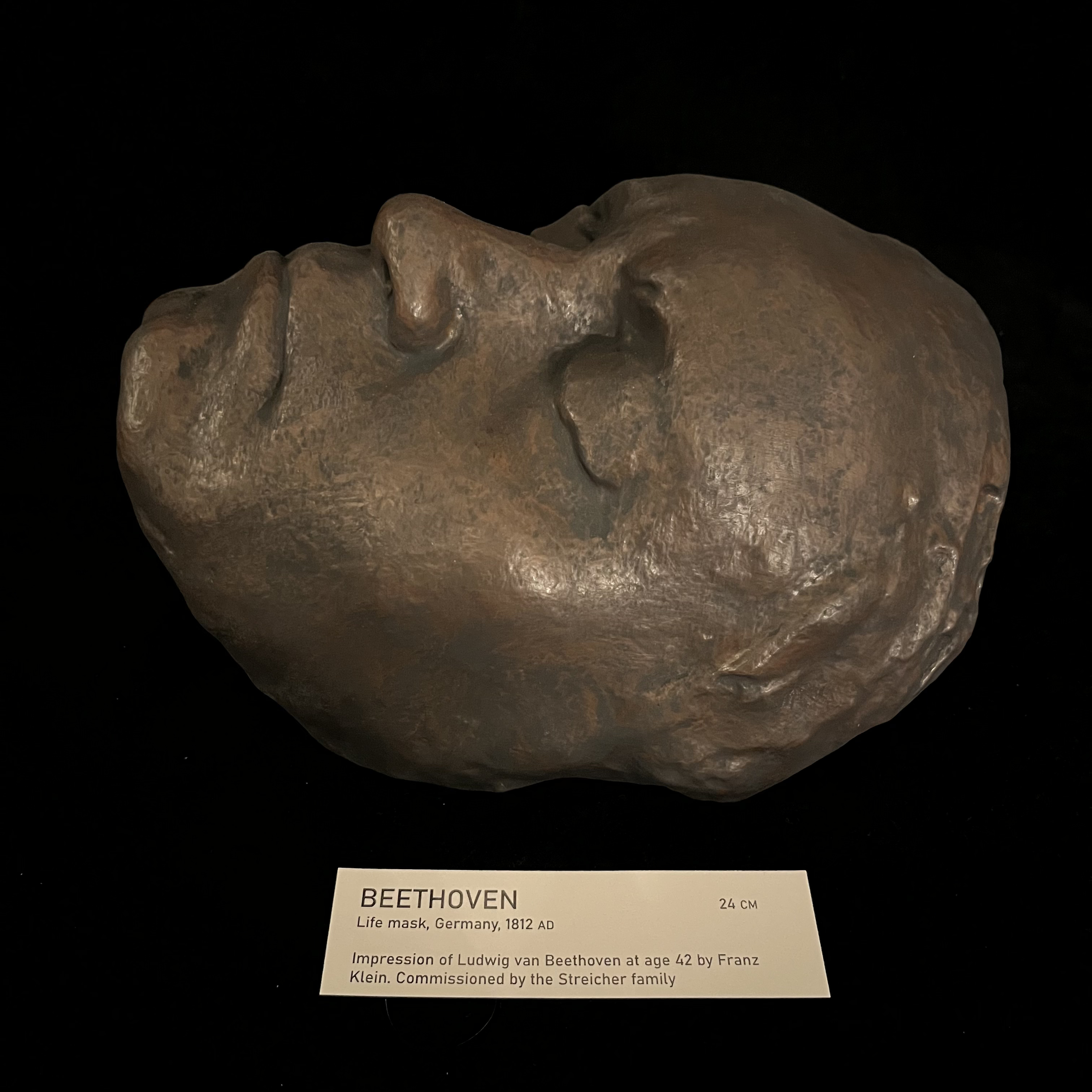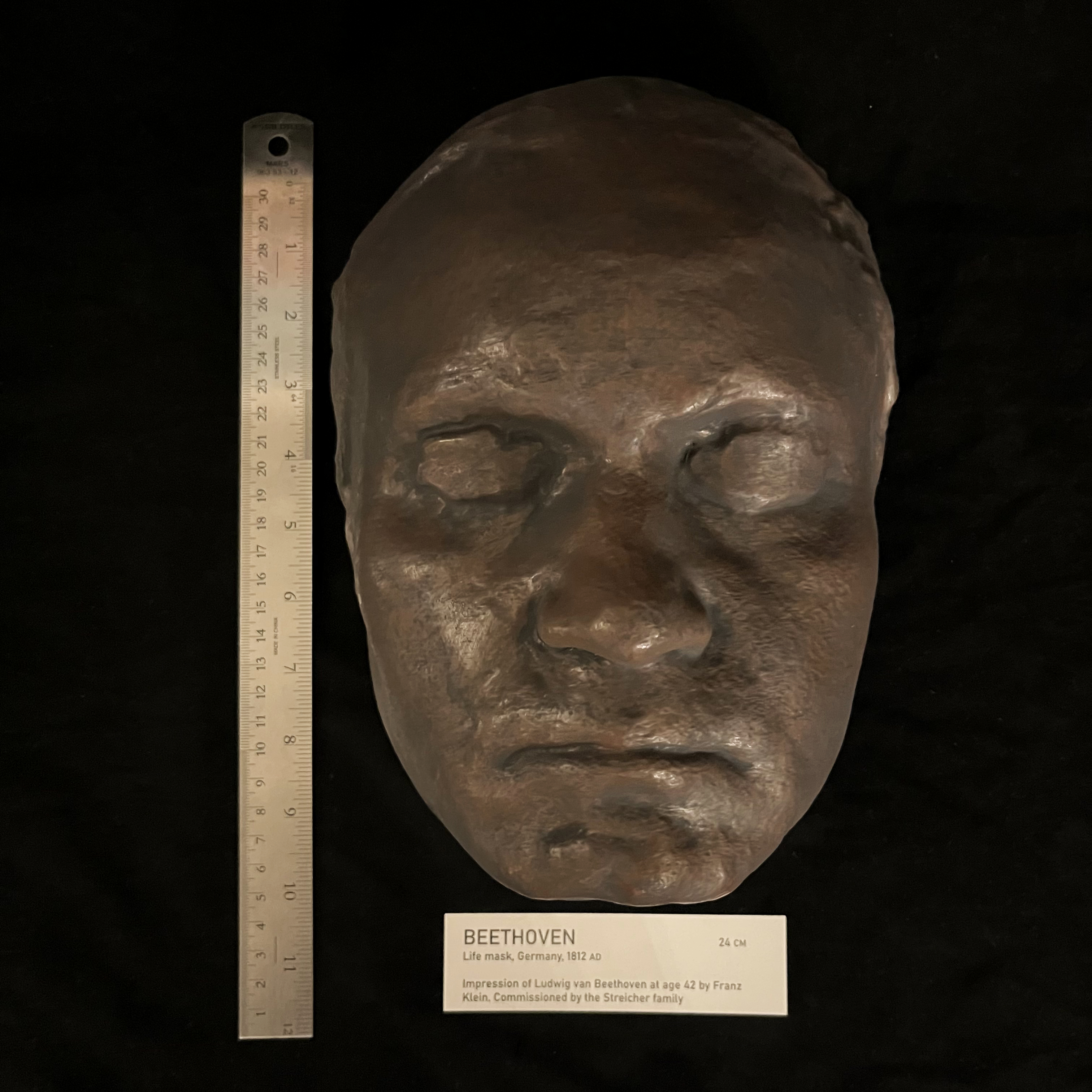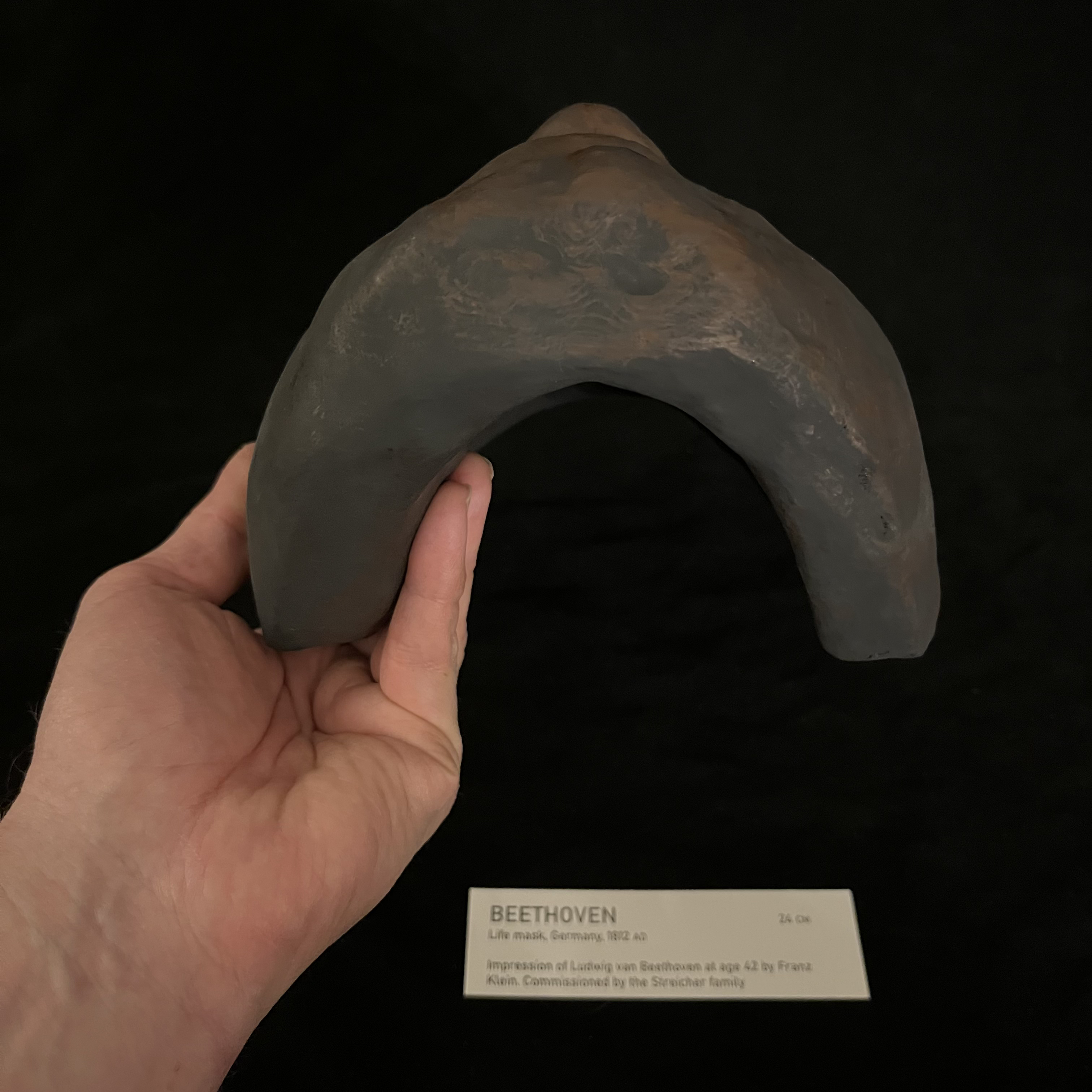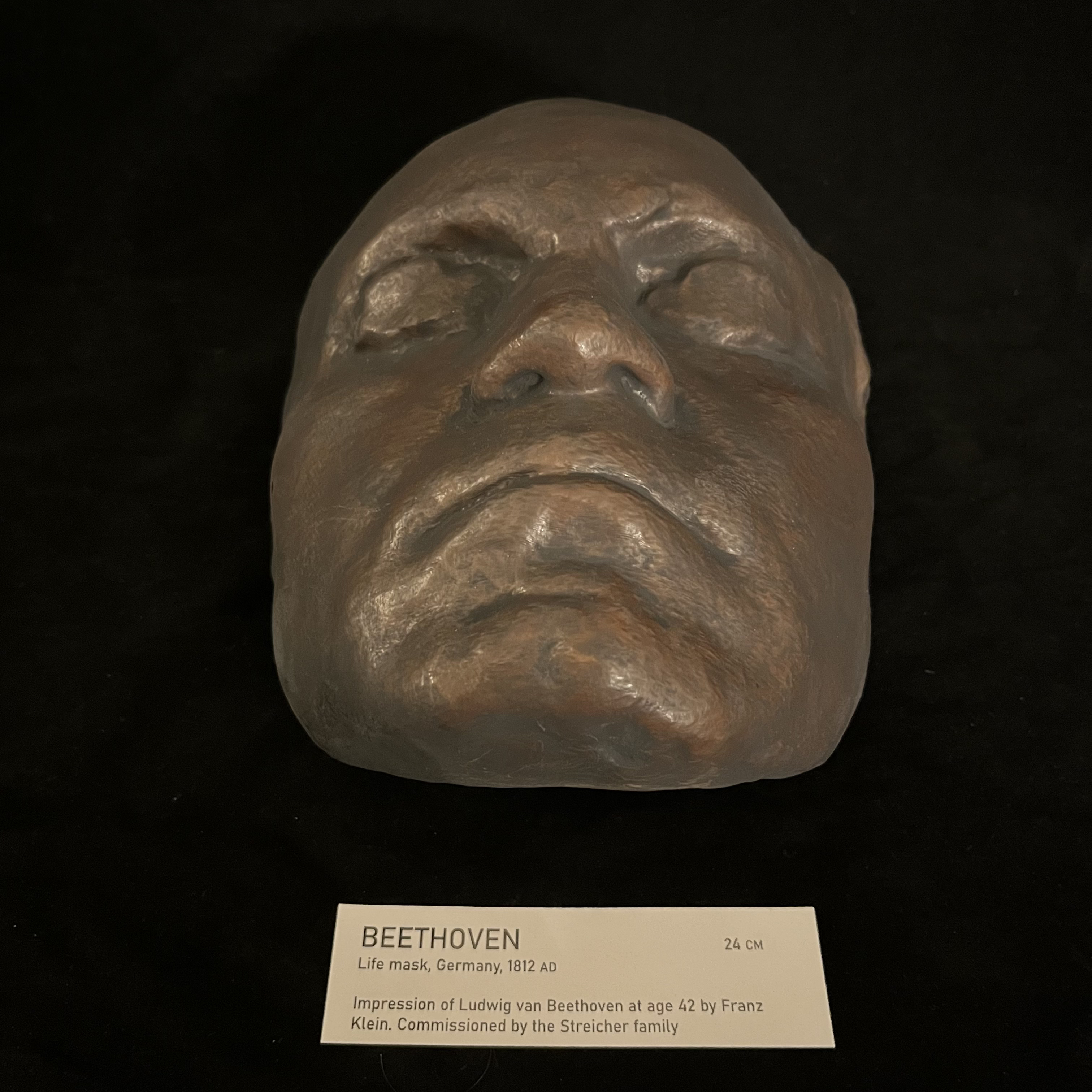 Casts derived from Klein’s original life mask are preserved in institutions worldwide and are treated as one of the most reliable visual records of Beethoven’s face in his early forties. In contrast to interpretive portraits, the life mask records Beethoven’s stern expression as sculpted by direct contact: a broad forehead, compressed brow, closed eyes set deep over a strong nose, and the firm planes around the mouth that later images tried to emulate.