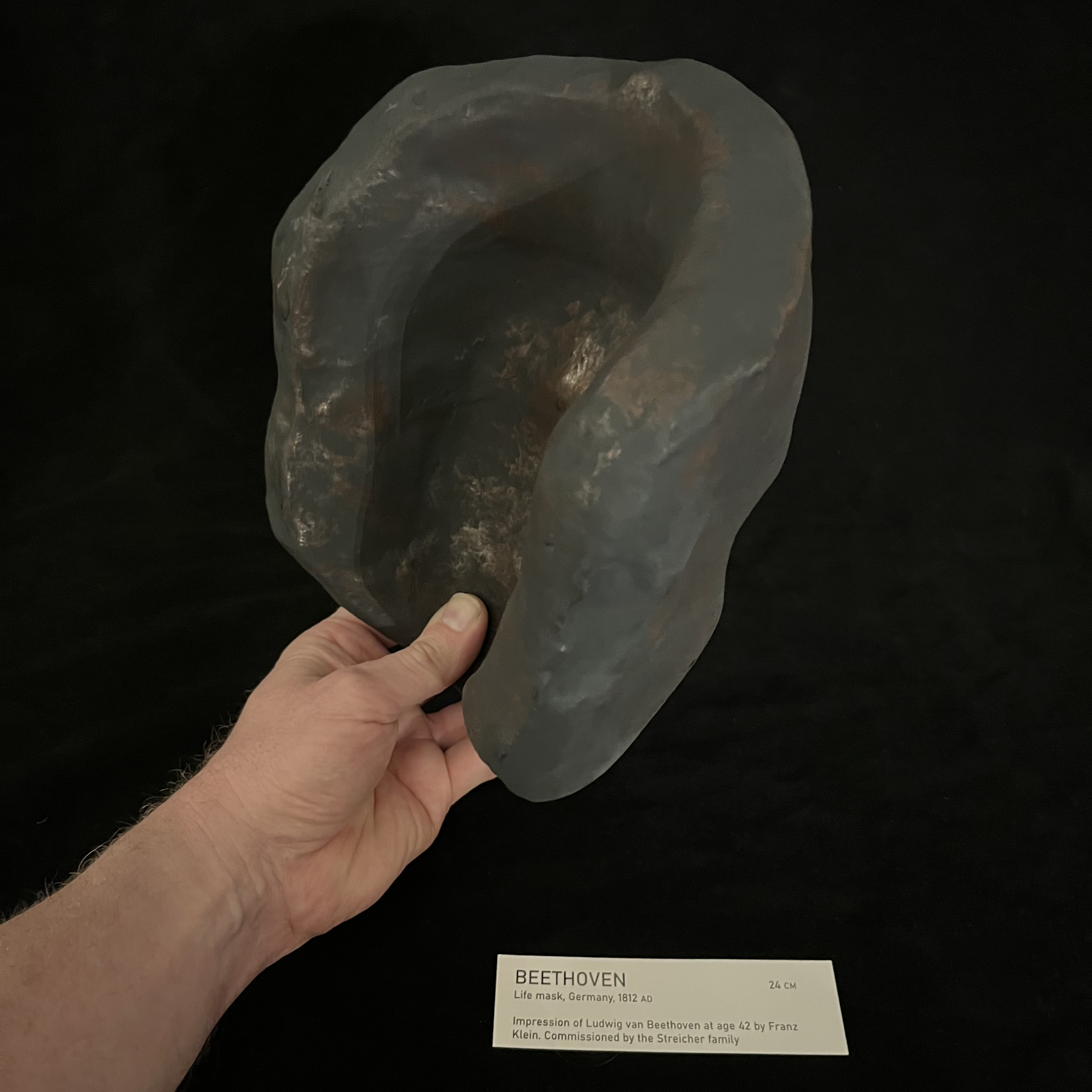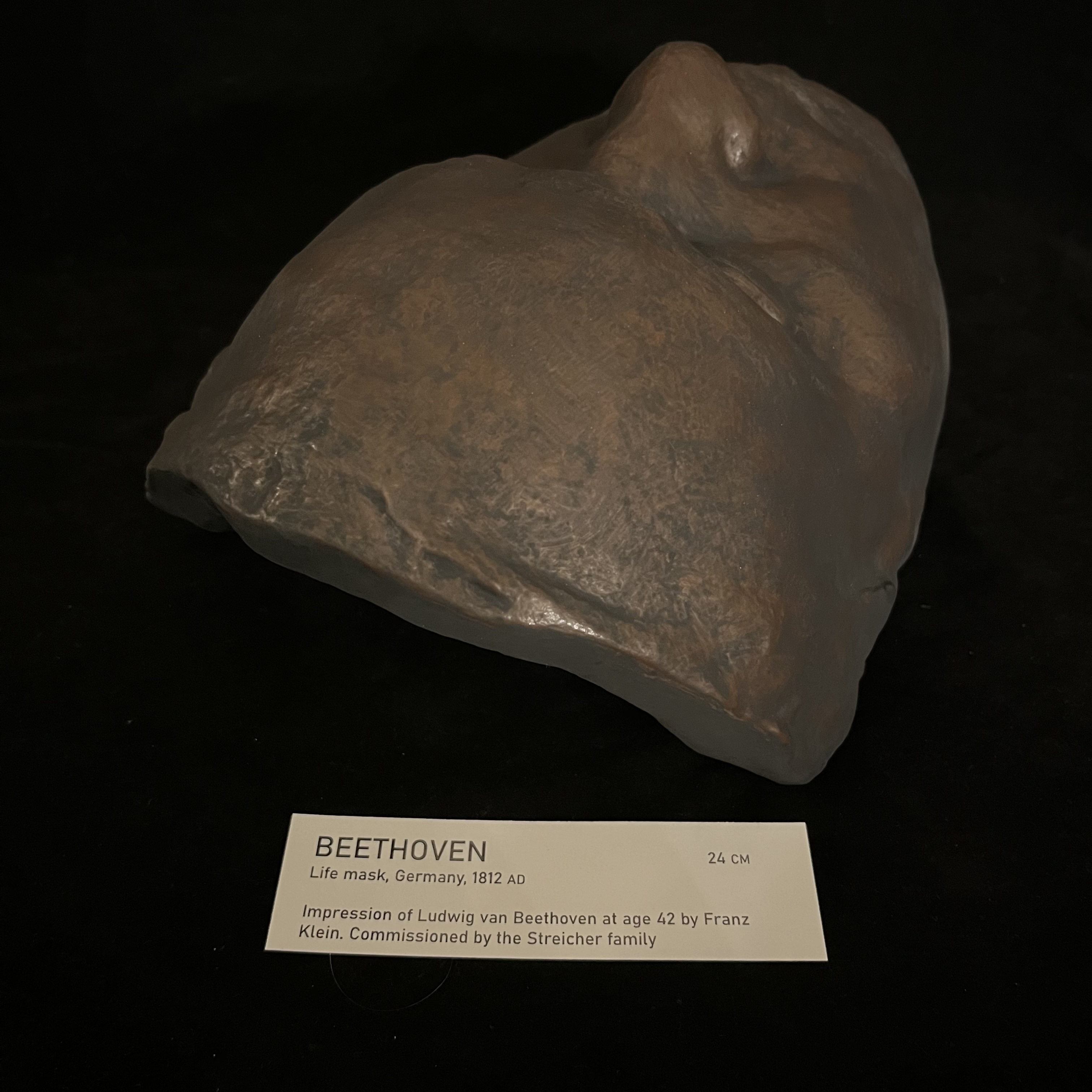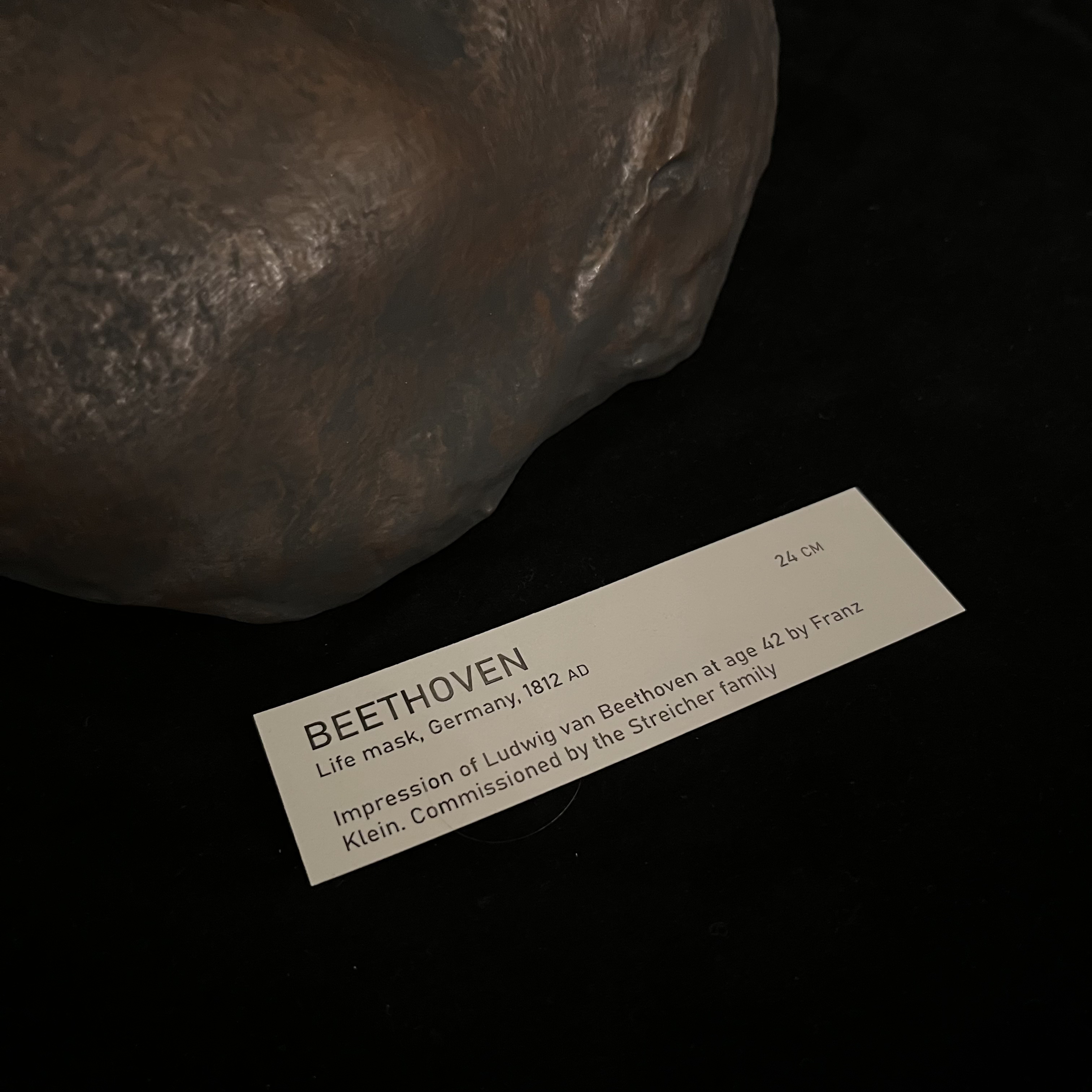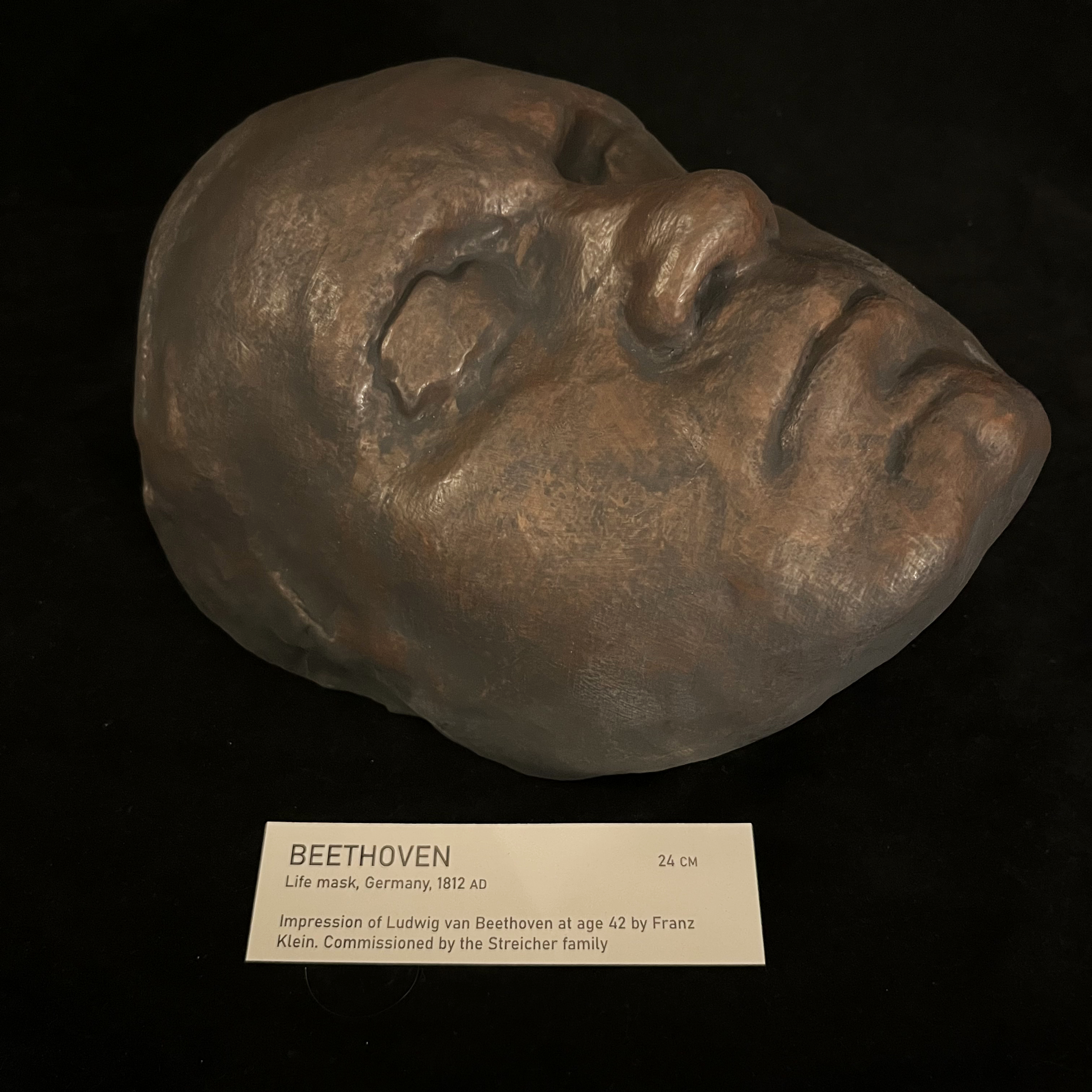 Casts derived from Klein’s original life mask are preserved in institutions worldwide and are treated as one of the most reliable visual records of Beethoven’s face in his early forties. In contrast to interpretive portraits, the life mask records Beethoven’s stern expression as sculpted by direct contact: a broad forehead, compressed brow, closed eyes set deep over a strong nose, and the firm planes around the mouth that later images tried to emulate.