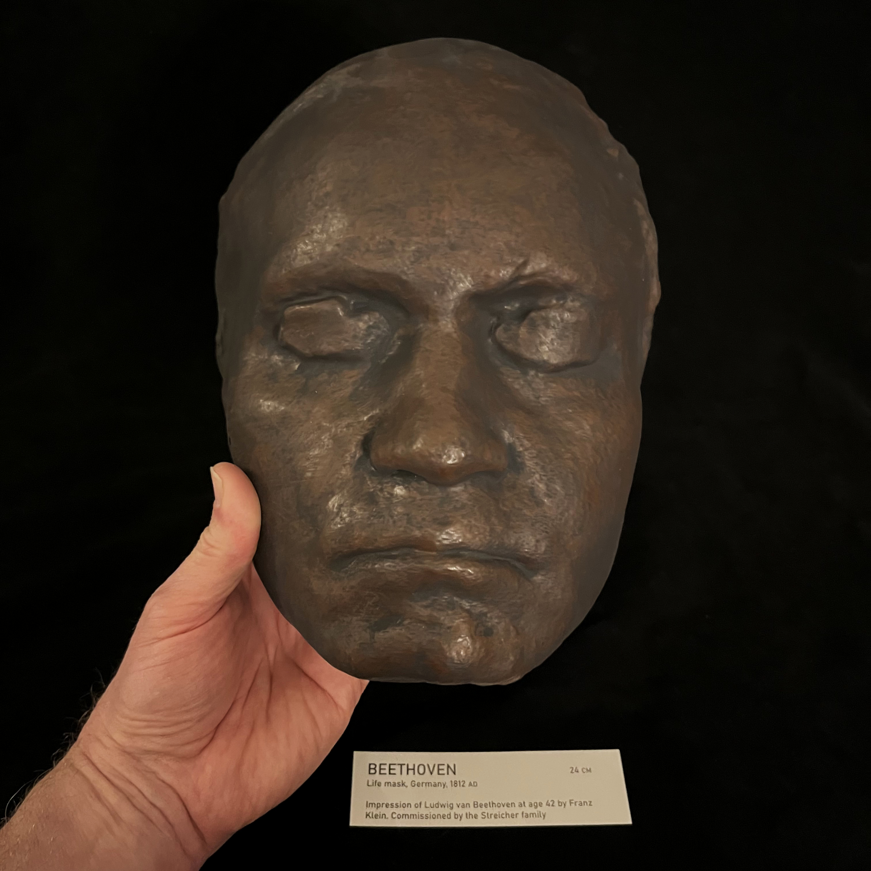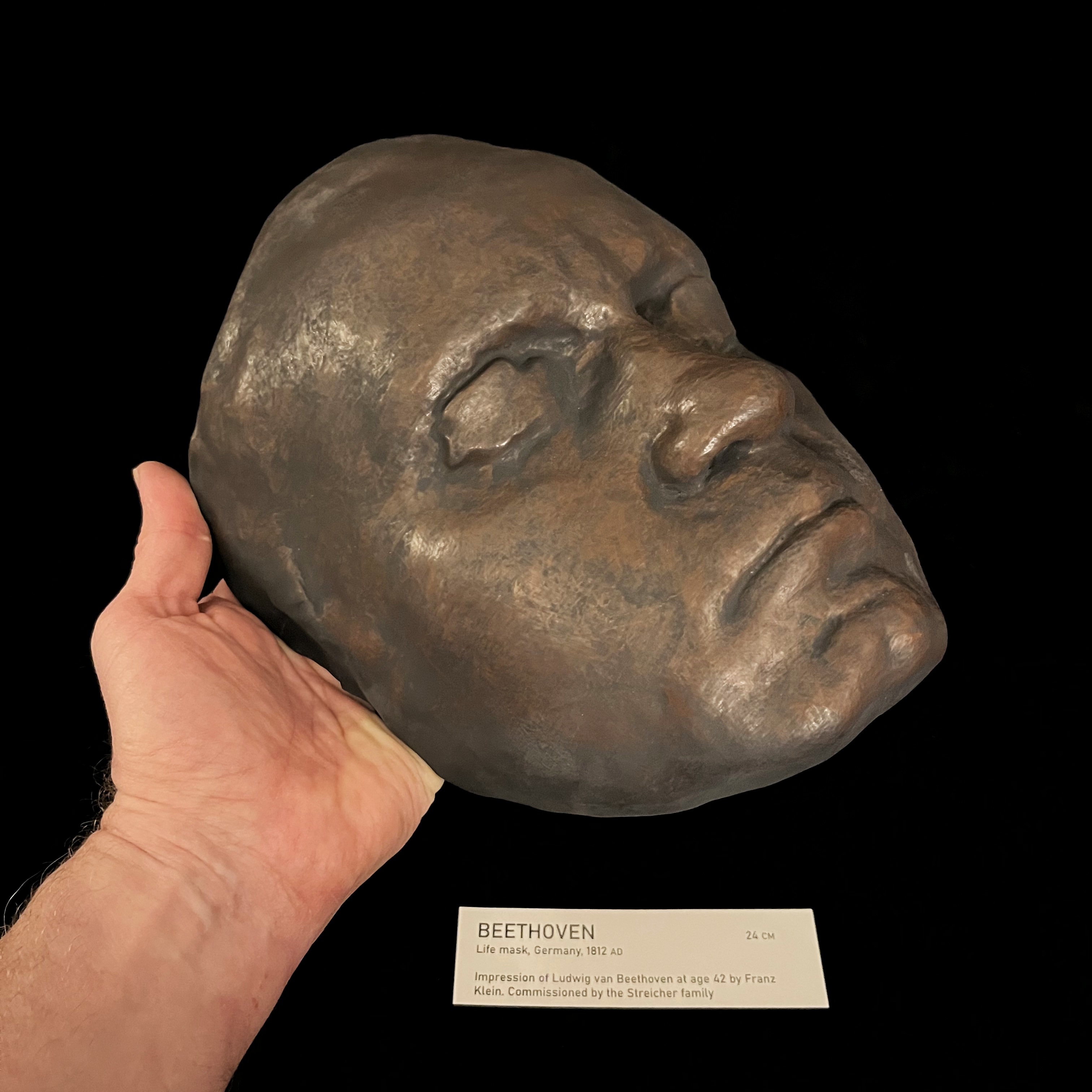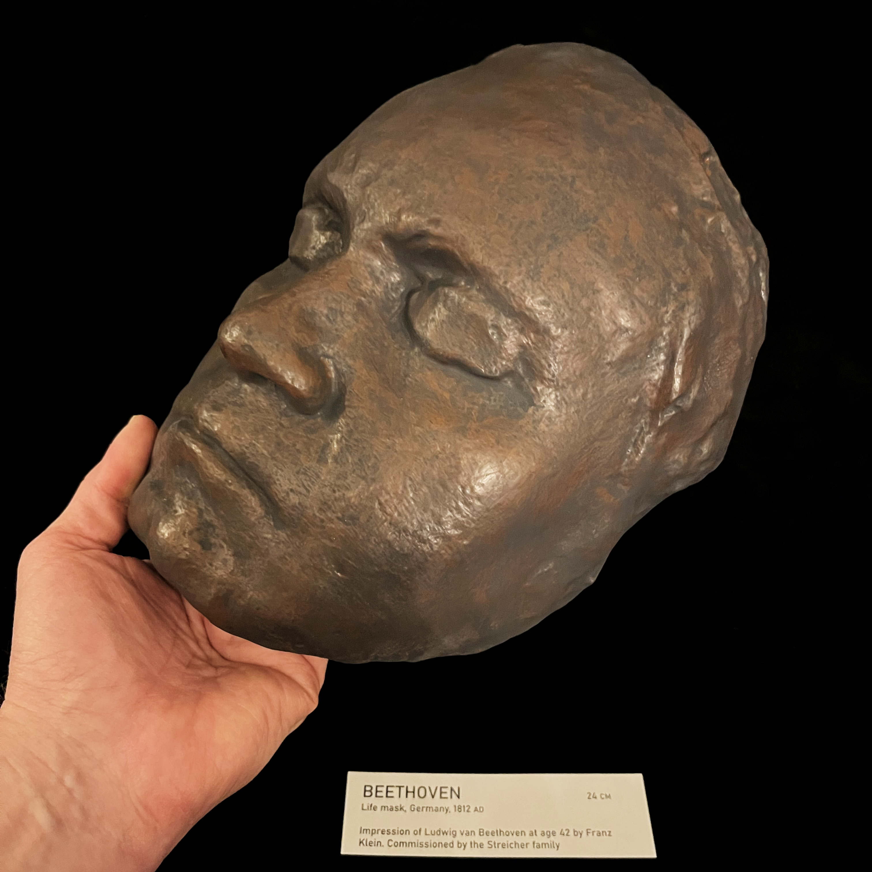 This is a life-size museum-grade replica of the 1812 life mask of Ludwig van Beethoven, taken directly from the composer’s face in Vienna by the Austrian sculptor Franz Klein.